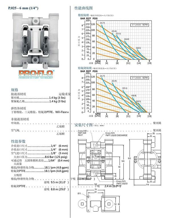 隔膜材質:丁晴橡膠、特氟隆、Wil-FlexTM