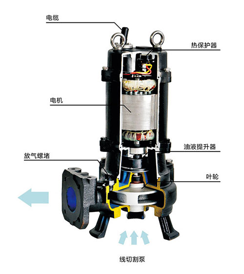 產品說明:南方WQ污水污物潛水電泵由電機與泵兩部分組成,兩者通過油室及機械密封組件隔開,分固定式自動耦合安裝和移動安裝。