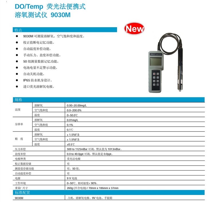 9030M型便攜數顯熒光法溶解氧測試儀