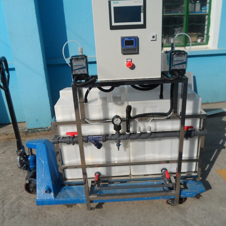 ?溶液可通過定量泵與進水在線稀釋至使用濃度,并通過靜態混合器得到均勻溶液。