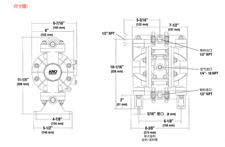 英格索蘭氣動隔膜泵非金屬1/2寸ARO氣動泵66605J-344隔膜泵