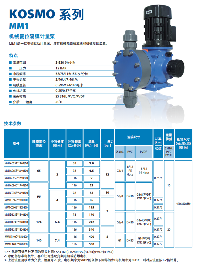 SEKO賽高MM1系列PVC/PVDF/不銹鋼泵頭大流量機械復位隔膜計量泵