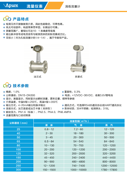 APURE愛普爾APT-32夾持式渦街流量計(jì)一體式4-20ma現(xiàn)場(chǎng)顯示流量計(jì)