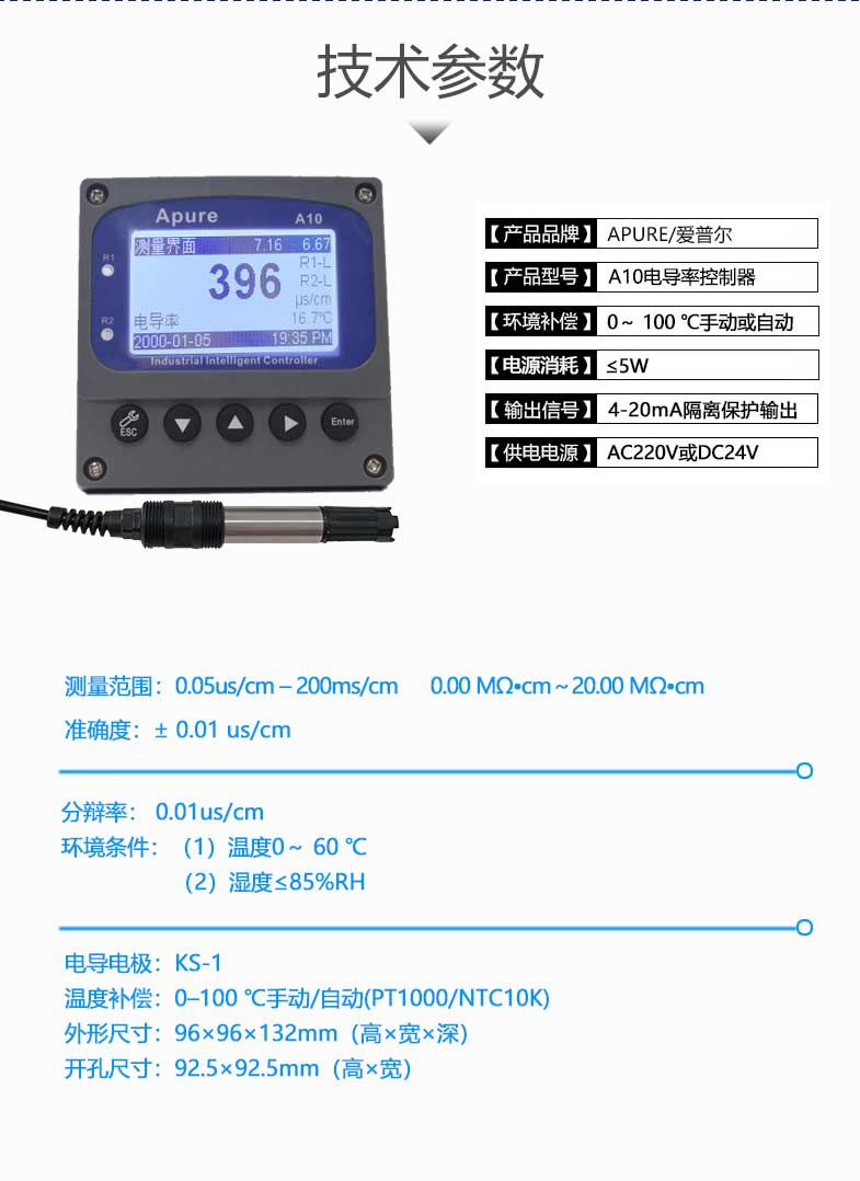 Apure電導率愛普爾A10CD工業在線電導/電阻率控制器