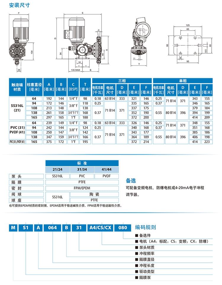 泵頭材質(zhì):SS316 PVC PVDF可選