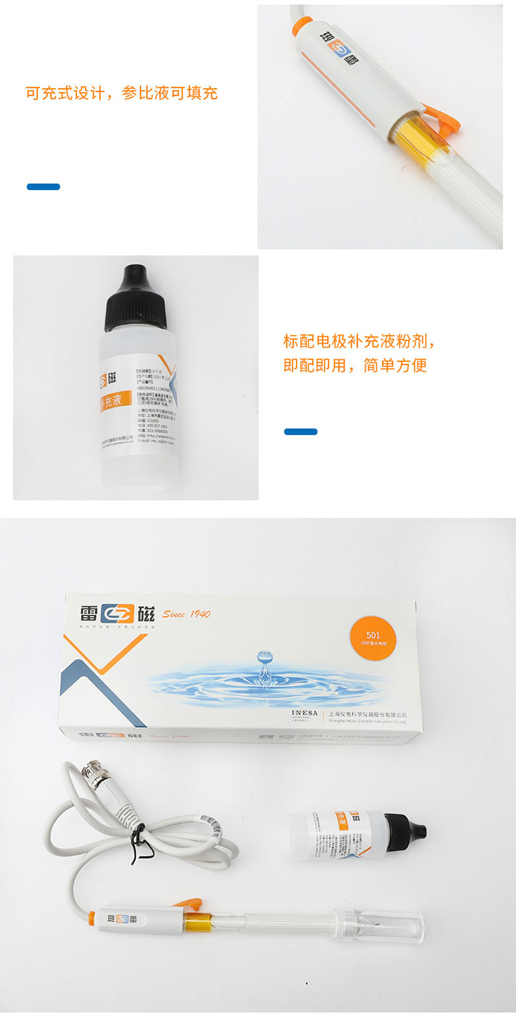 雷磁501型ORP復合電極實驗金屬電極玻璃外殼材質鉑金電極材質