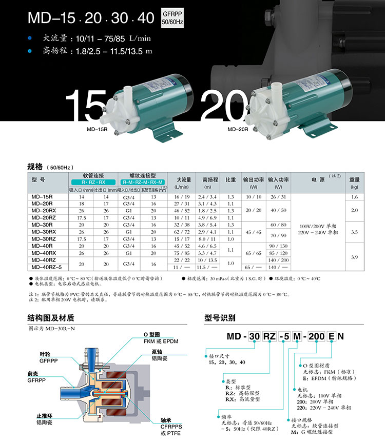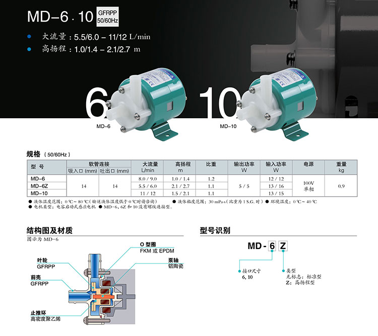 型號:IWAKI易威奇耐腐蝕磁力驅動泵MD-6