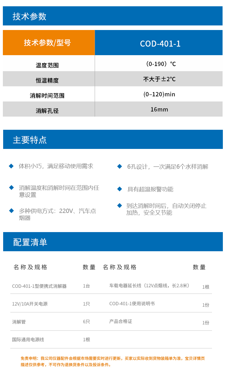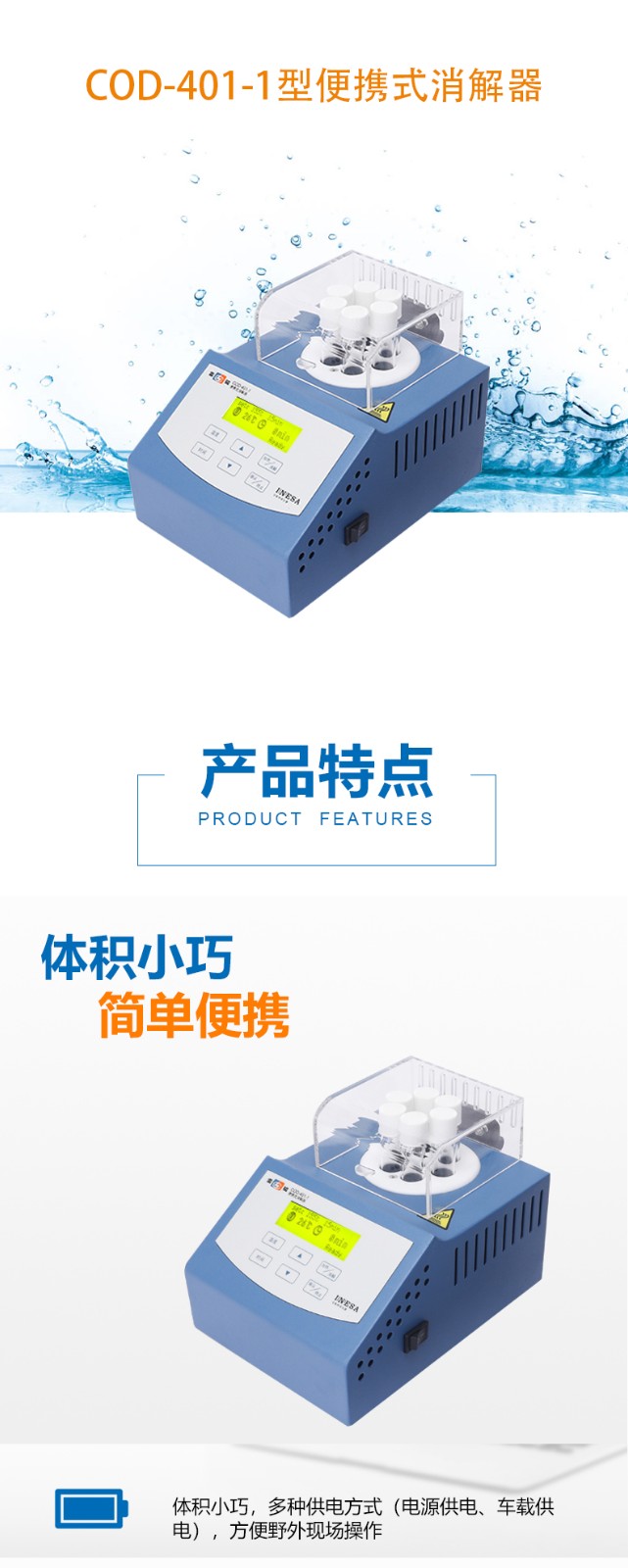 上海雷磁COD-401-1便攜式消解器體積小巧COD測定儀分析儀消解器