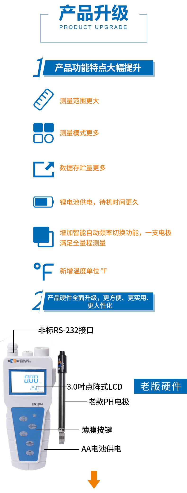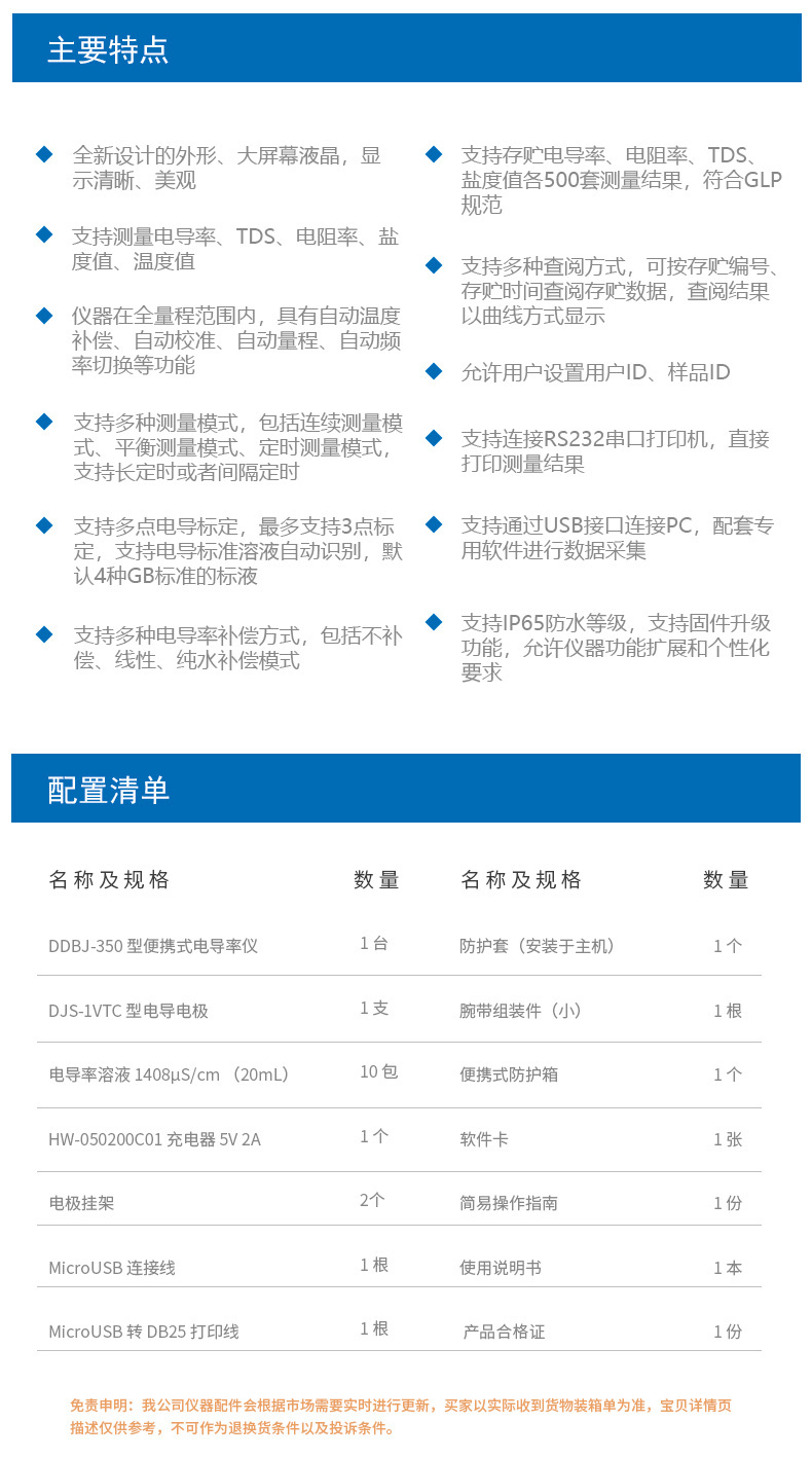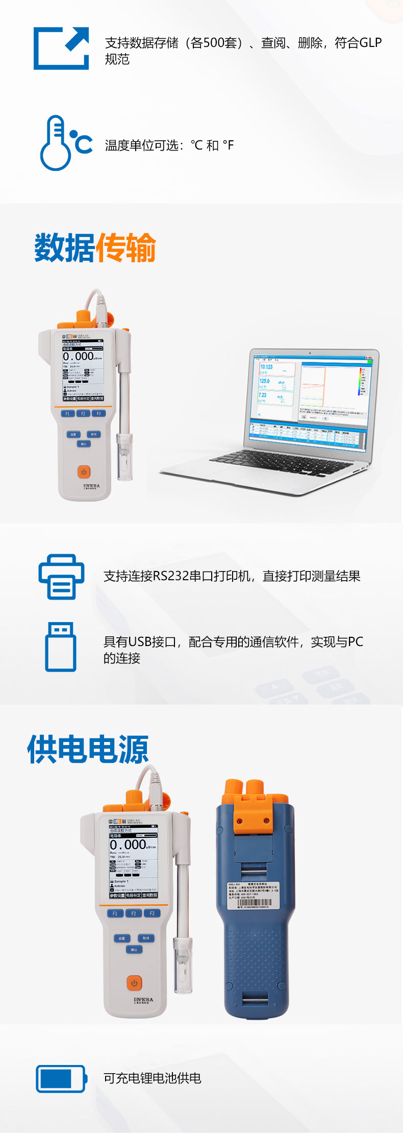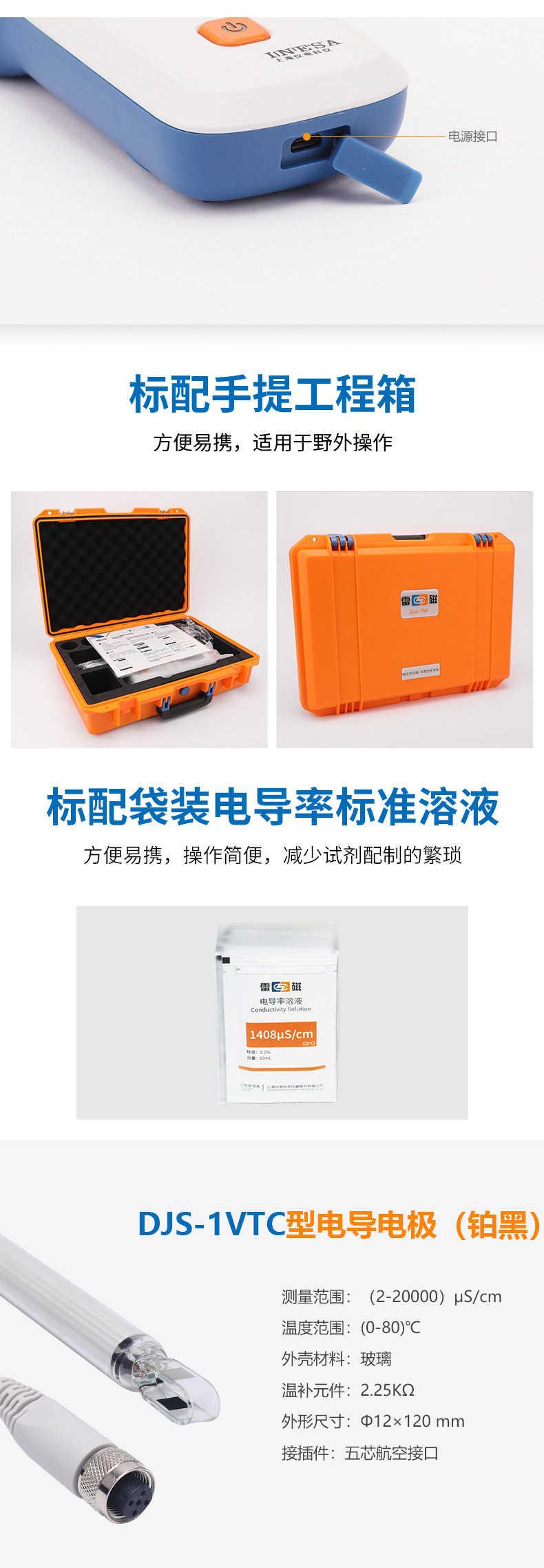 雷磁(leici)DDBJ-350型便攜式電導率儀自動手動溫度補償電導率監測儀