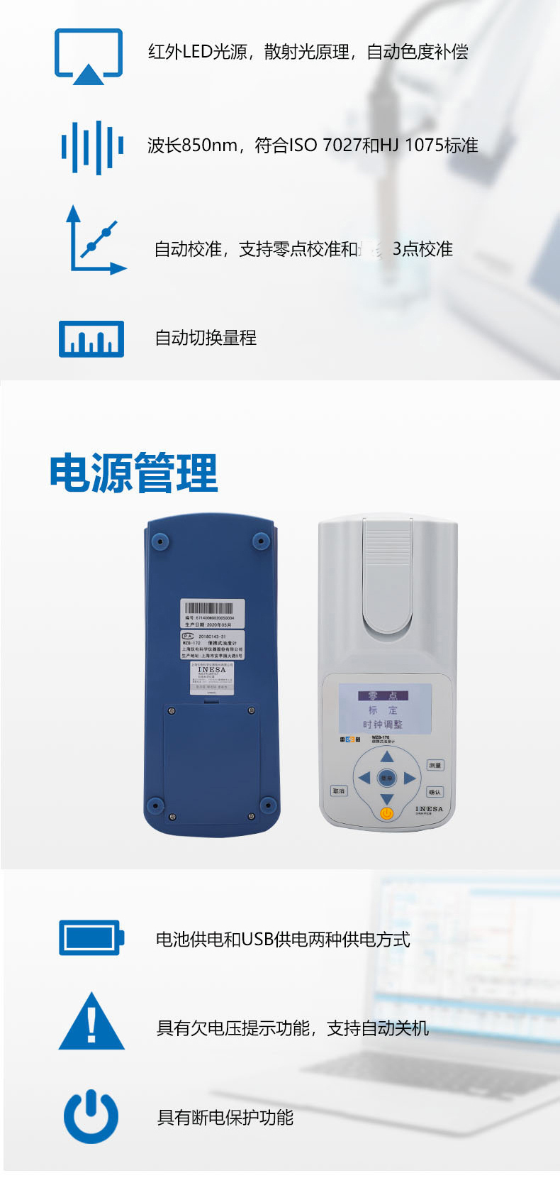雷磁(leici)WZB-170型便攜式濁度計標準水質分析儀量程自動切換濁度儀