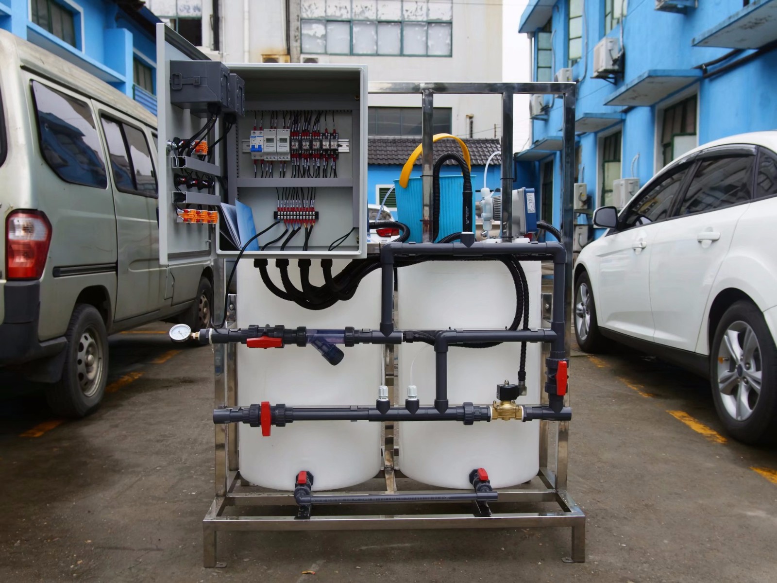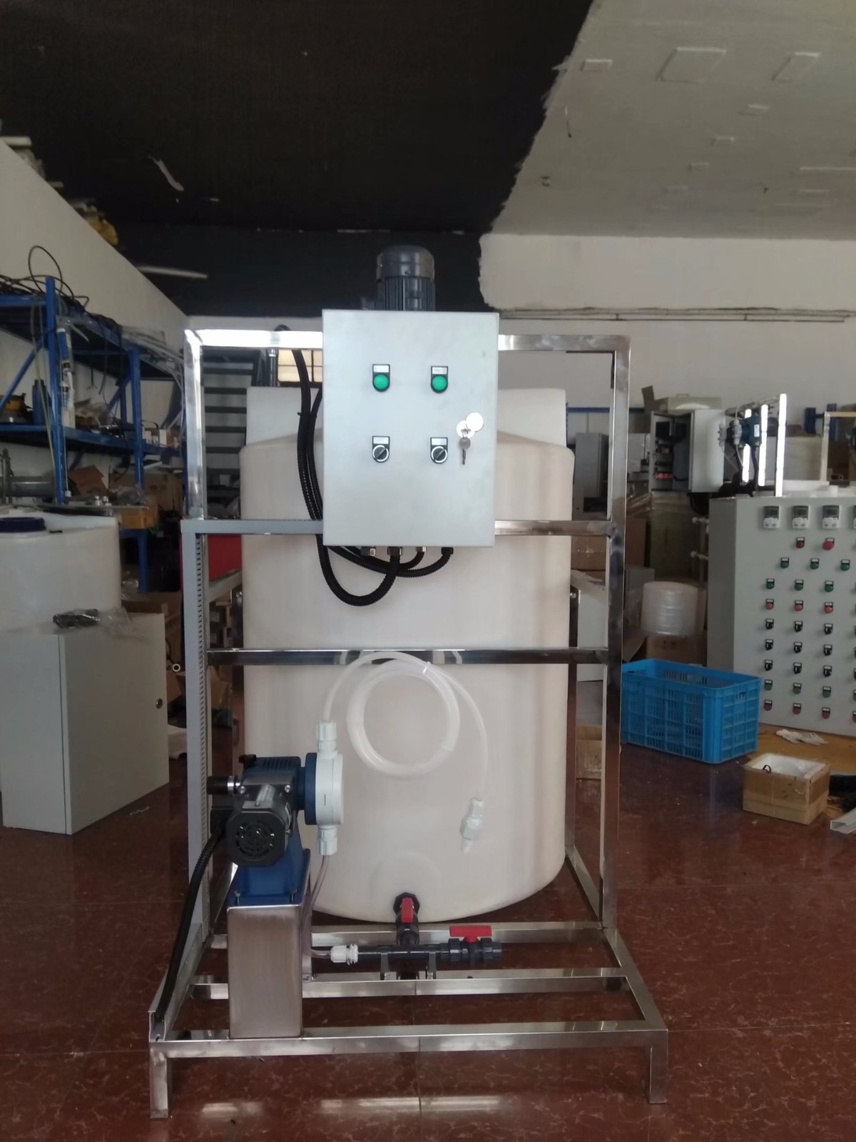 該加藥裝置主要用于造紙行業(yè),以及需要DCS控制的加藥系統(tǒng)。