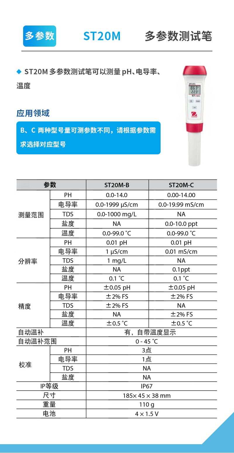 奧豪斯水質測試筆ST系列便攜式多參數/PH/ORP/電導率/TDS/鹽度/溶解氧水質測試儀