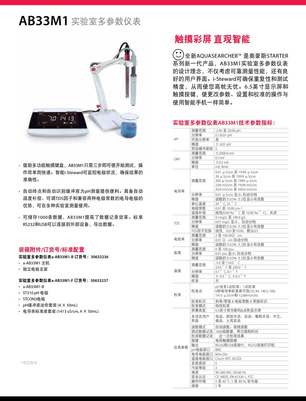 奧豪斯實(shí)驗(yàn)室多參數(shù)儀表AB33M1智能ph電導(dǎo)率ORP多參數(shù)水質(zhì)分析儀