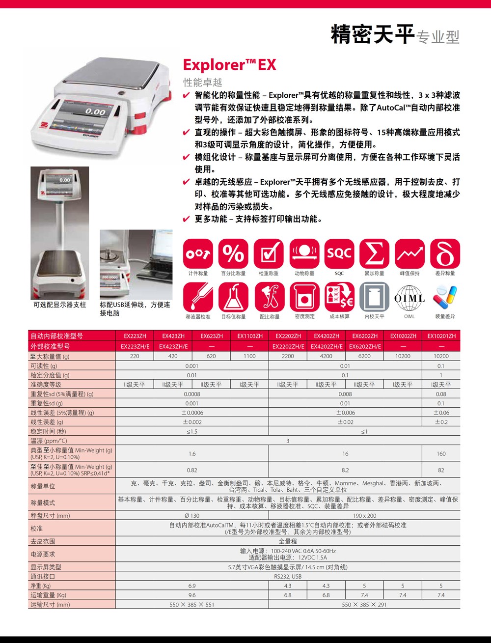 奧豪斯ExplorerEX系列分析天平實驗室電子稱準(zhǔn)微量精密大稱量天平