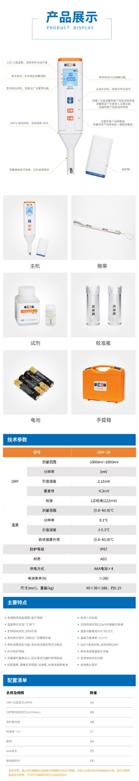 【雷磁】筆式ORP計水質檢測儀ORP-30
