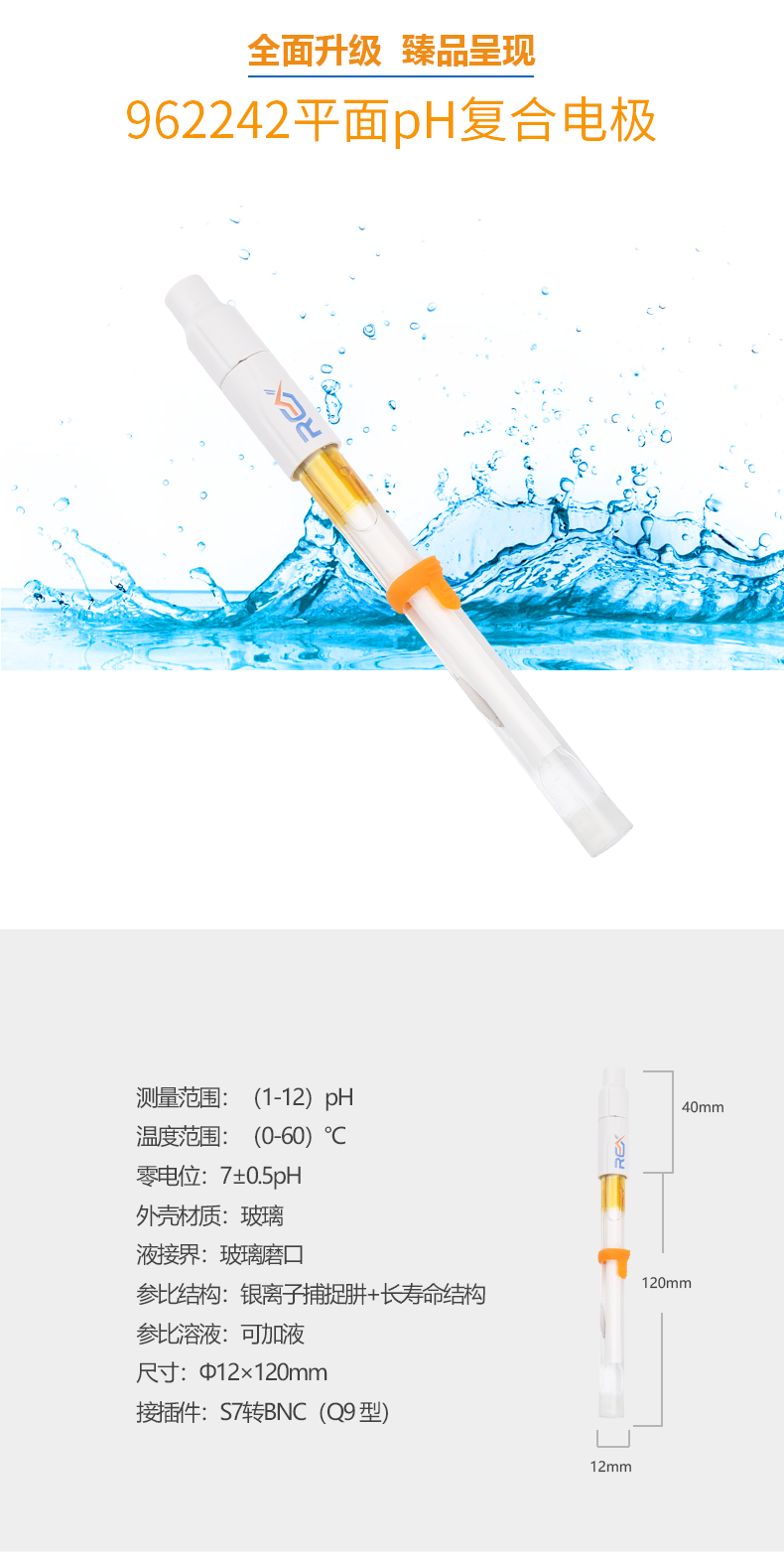 【雷磁】雷磁高端ph電極高精度 962242平面ph復合電極