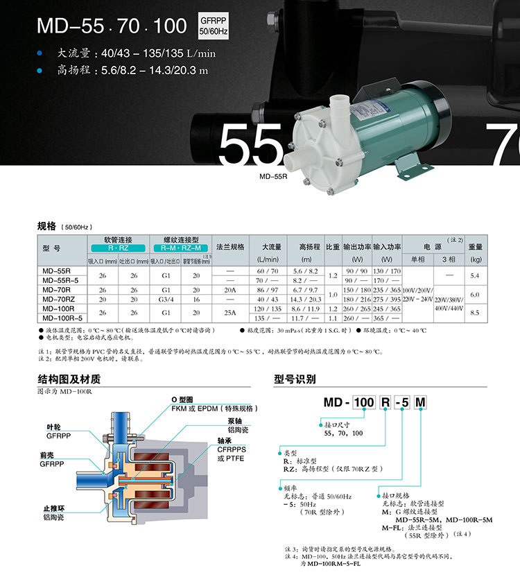 【IWAKI】易威奇磁力泵MD-70R過濾機循環水泵GFRPP材質小型磁力驅動泵
