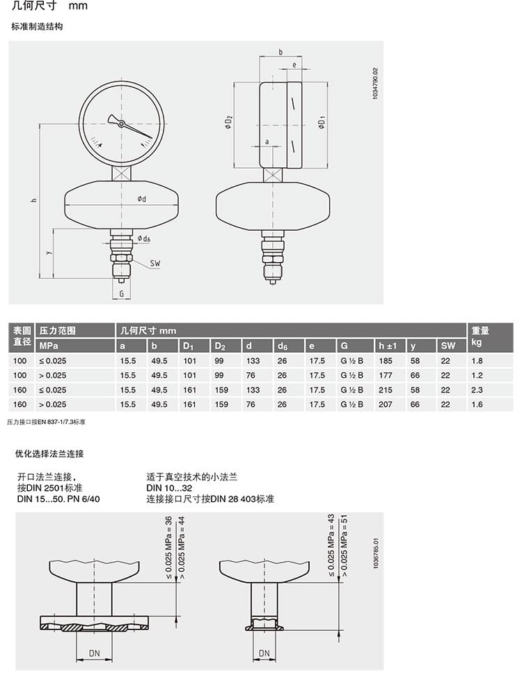2. 膜片壓力表,化學(xué)工業(yè)型,表頭不充液/充液,高過壓保護壓力表,針對UHP應(yīng)用:422.12 432.50 432.56 423.36 423.25