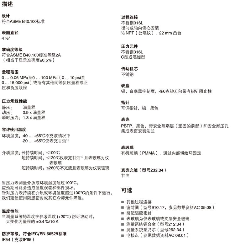 2. 膜片壓力表,化學(xué)工業(yè)型,表頭不充液/充液,高過壓保護(hù)壓力表,針對UHP應(yīng)用:422.12 432.50 432.56 423.36 423.25