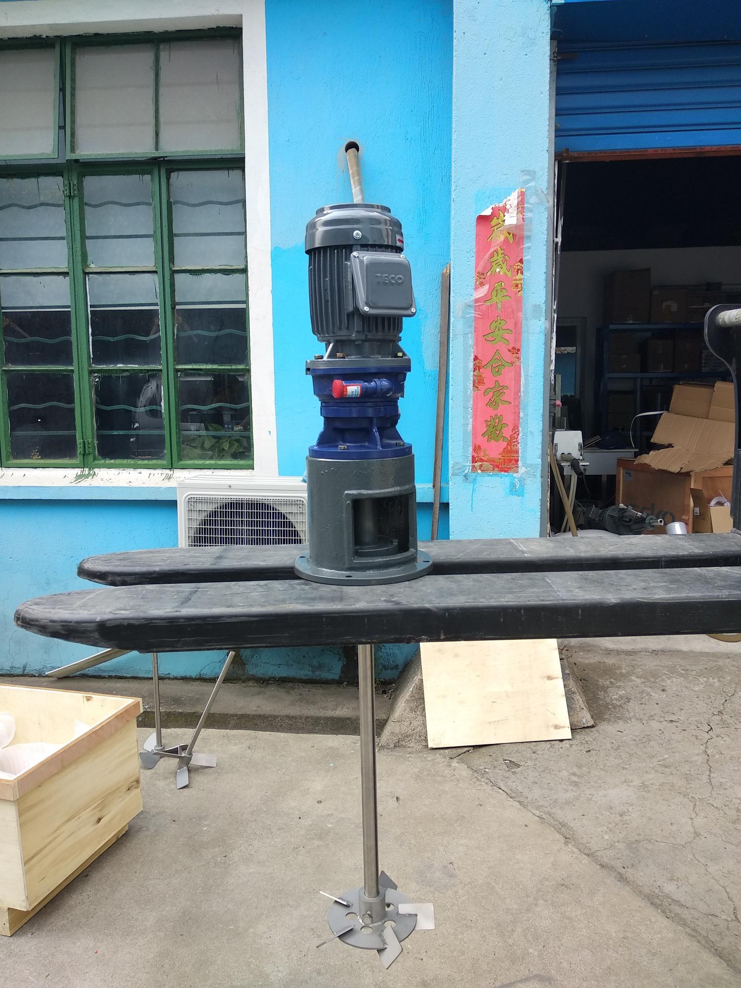 其中槳式攪拌器是一種結(jié)構(gòu)比較簡單的液體攪拌機(jī),它的攪拌部件是兩片葉片或者三片葉片。槳式攪拌器根據(jù)葉片的形狀特點不同又可以分為平槳式液體攪拌機(jī)和螺旋推進(jìn)式液體攪拌機(jī)。槳式液體攪拌機(jī)適用于低粘稠度的液體、懸浮液及溶解液攪拌。在水處理行業(yè)大部分都是使用槳式液體攪拌機(jī)。