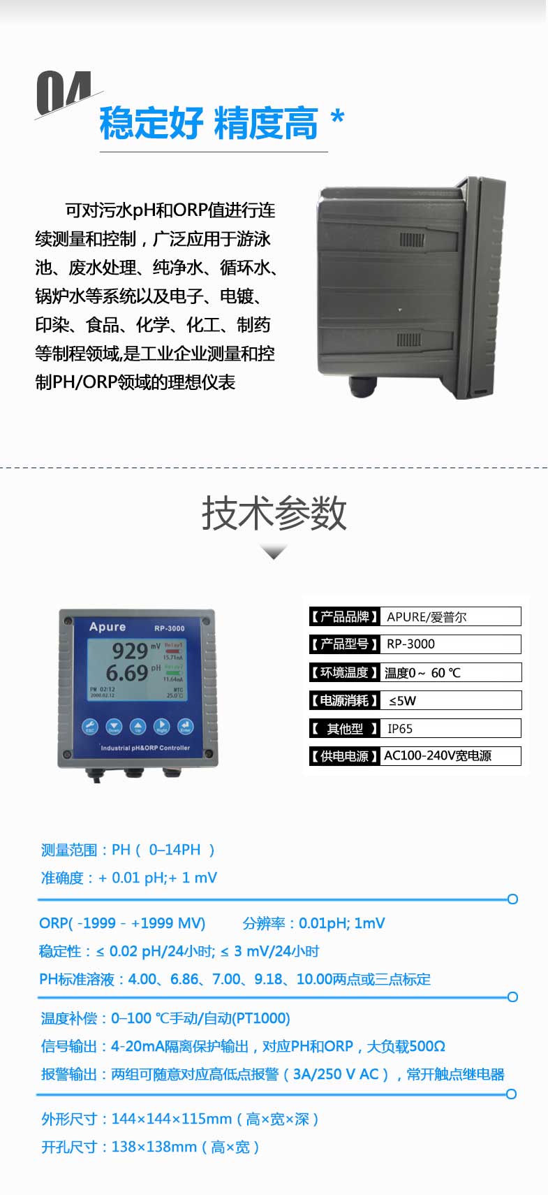 工業在線酸堿度計RP-3000 PH計測試儀 雙通道PH/ORP控制器愛普爾