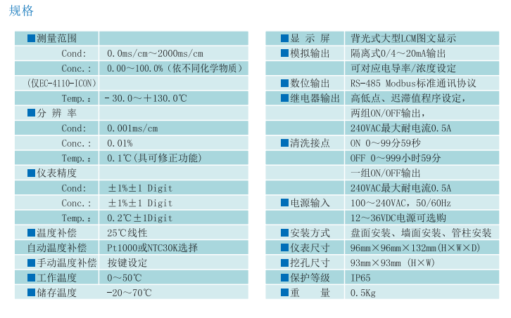 SUNTEX 微電腦電感式電導率/酸堿濃度變送器EC-4110-I EC-4110-ICON