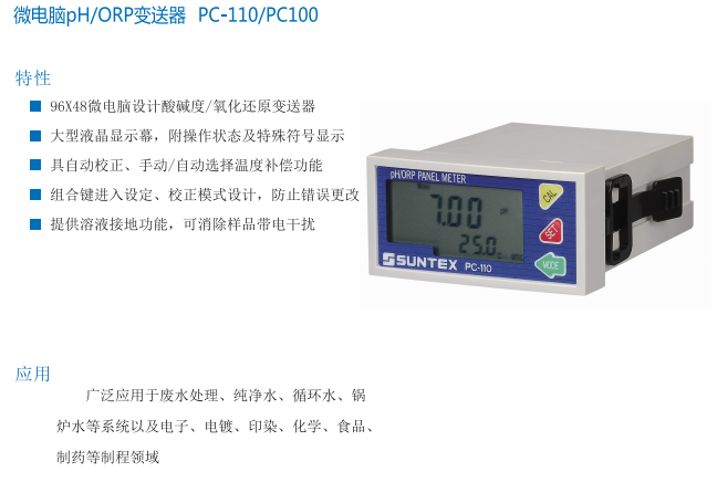 SUNTEX  微電腦pH/ORP變送器PC-110/PC100